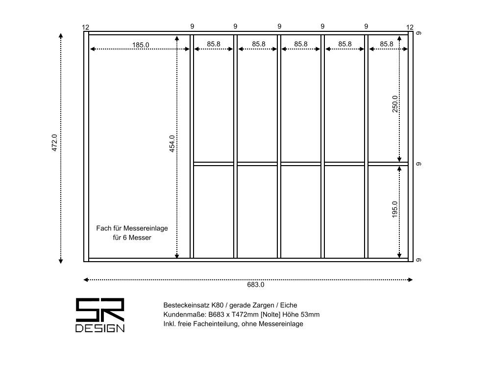 Produktinformationen "Besteckeinsatz K80 für Schubladen mit geraden Zargen. Einzelanfertigung. Eiche."