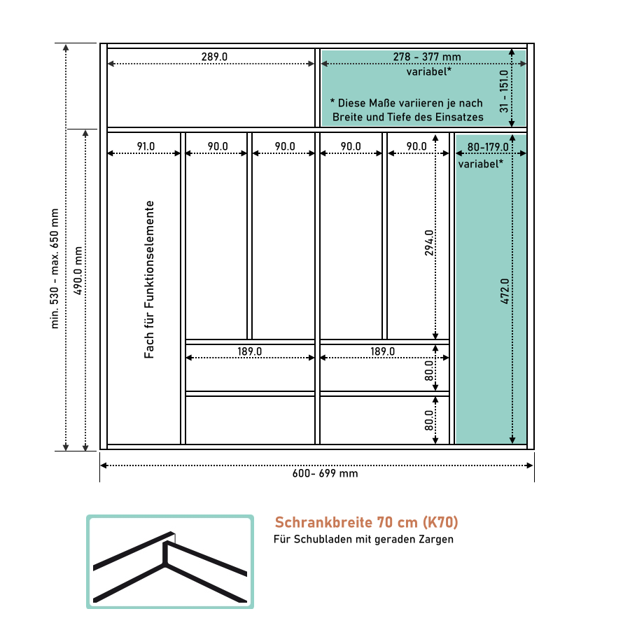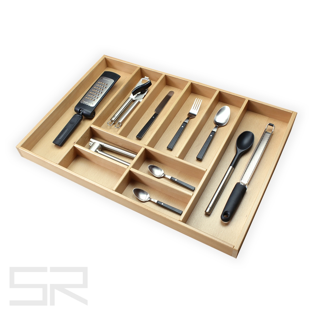 Produktinformationen "Passgenauer Besteckeinsatz aus Holz für Schrankbreite 70 cm (K70) mit extra tiefen / langen Schubladen"